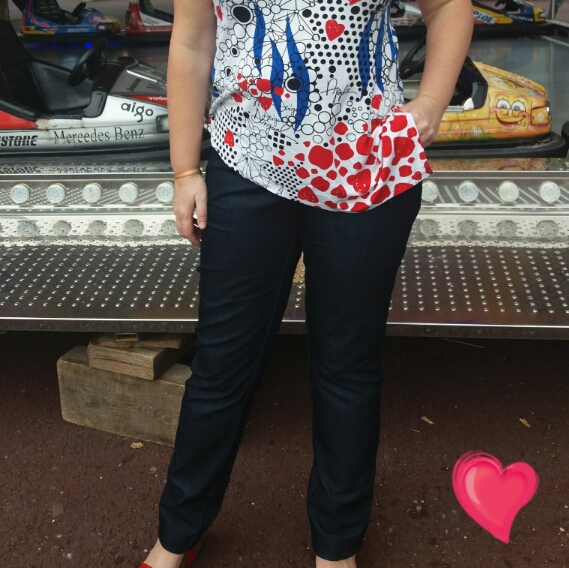 Las modificaciones del patrón son las mismas que hice en mis primeros Ginger, pero no debí respetar bien los márgenes de costura, porque estos me han quedado más altos de cintura.